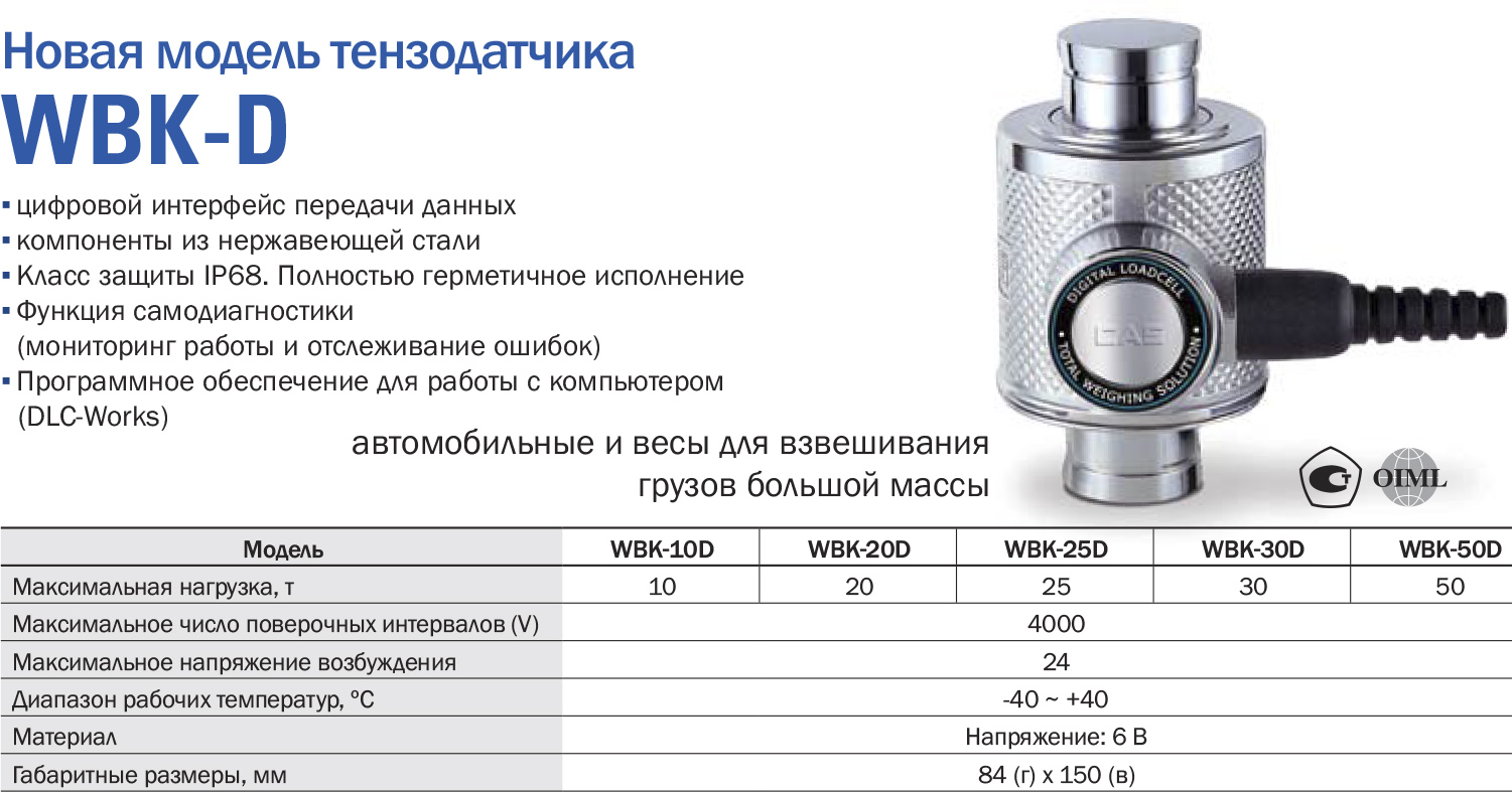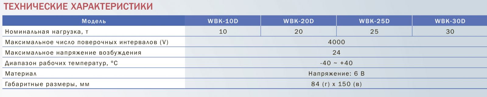 Модельный ряд датчиков весоизмерительных тензорезисторных WBK разделяется по макс. нагрузке (Dmax),т: